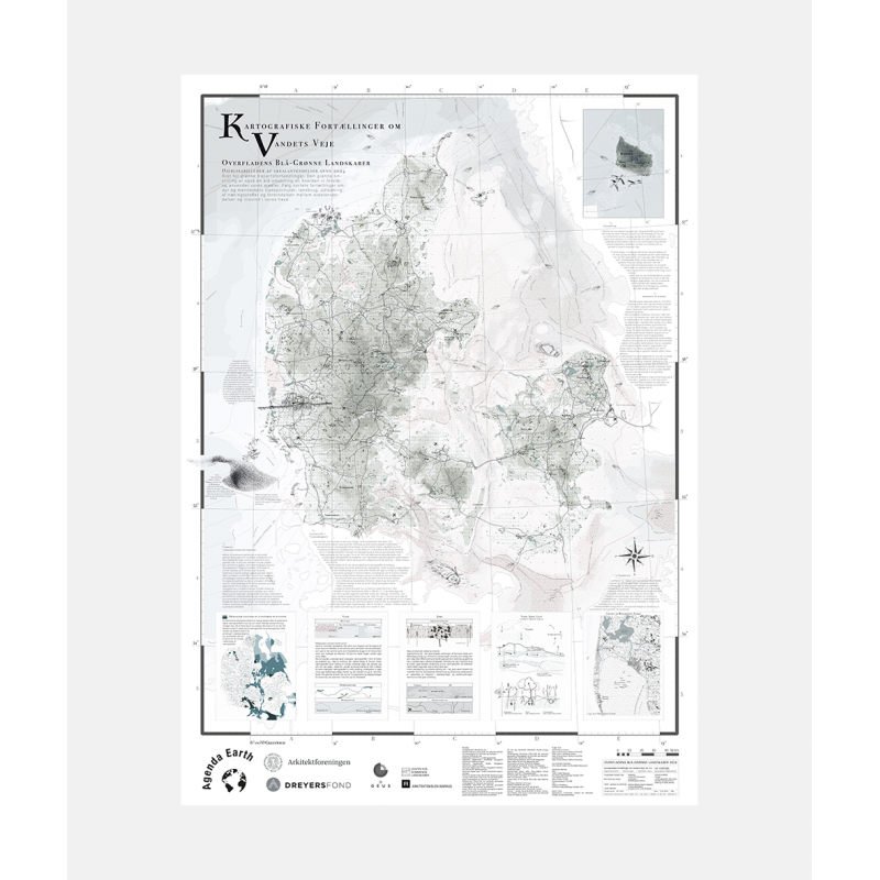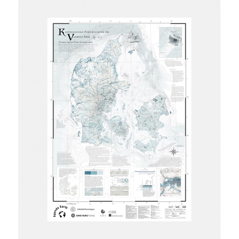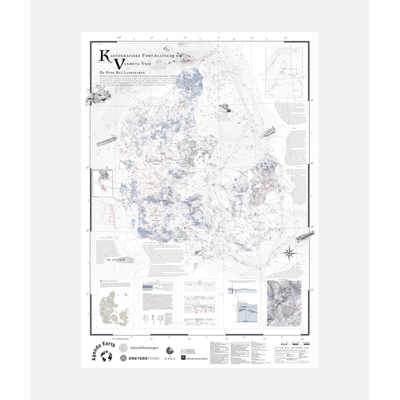 Det blå Danmarkskort - fire kort - A0. Kartografiske fortællinger om vandets veje. Print-on-demand.