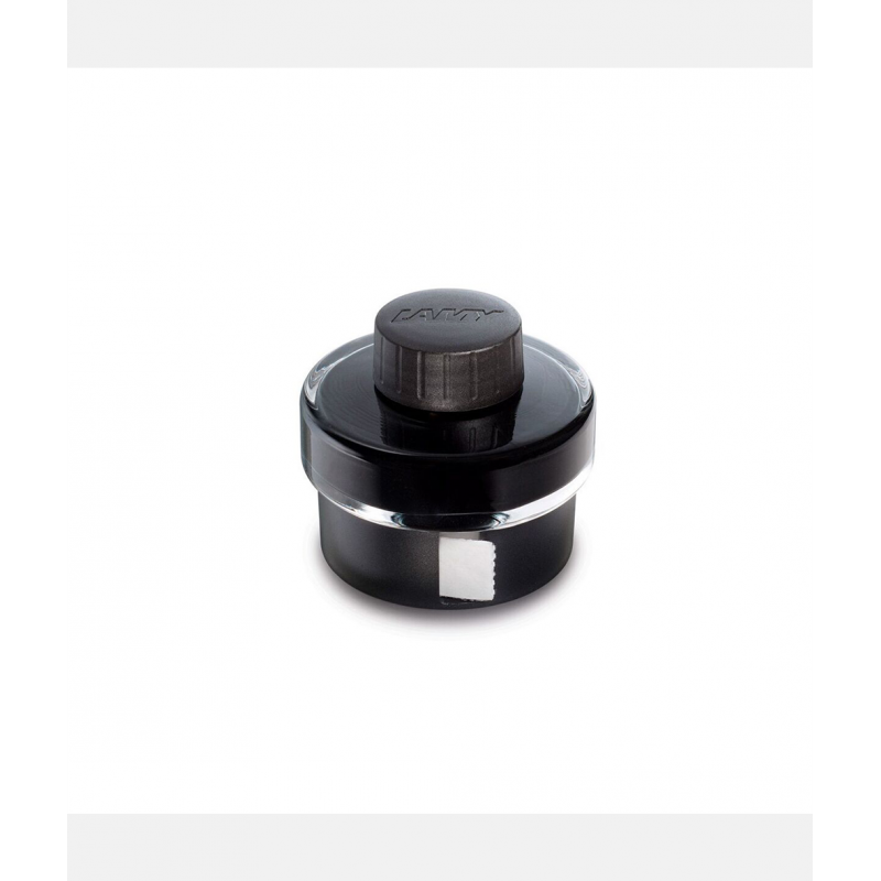LAMY T52 blækbeholder på 50 ML. Den er udstyret med trækpapir, så du kan rengøre pennen og spidsen efter opfyldning. Den kegleformede bund bevirker, at blækket kan suges op til næsten til sidste dråbe. Blækket fungerer til Lamys penne, men også i de fleste andre fyldepenne.