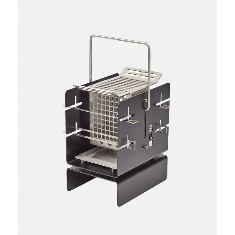 Convenient. Compact. Eco-friendly. Load up some wood or coal and lighter fluid in the central chamber and take this with you to the beach, to the park, or wherever. Comes with grease tray and skewers that rotate and lock in place so you can cook your food perfectly every time. The top plate can be used to toast bread, roast vegetables, grill sausages, or you can even cook potatoes in a pot on top of it.