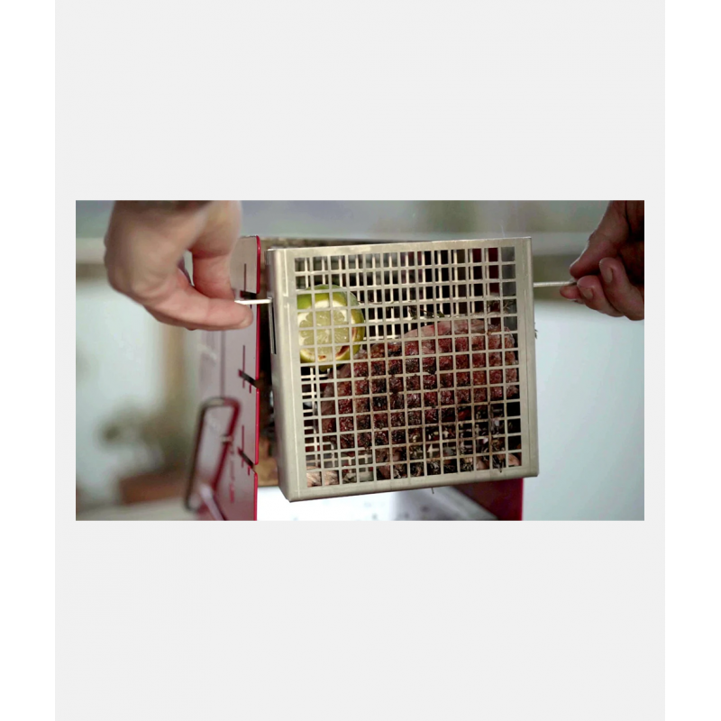 Every grill is equipped with a handle, central grill basket, upper grill gate, and removable grease tray.