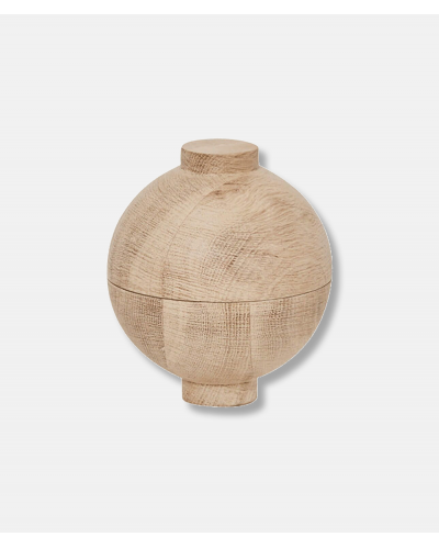 The Wooden Galaxy is available in solid oak or black painted hardwood.This beautiful accessory is made of two hand-turned wooden bowls that forms an Asian / Japanese inspired sphere. Use the Wooden Galaxy as a decorative storage container or choose to use the lid as a separate bowl.