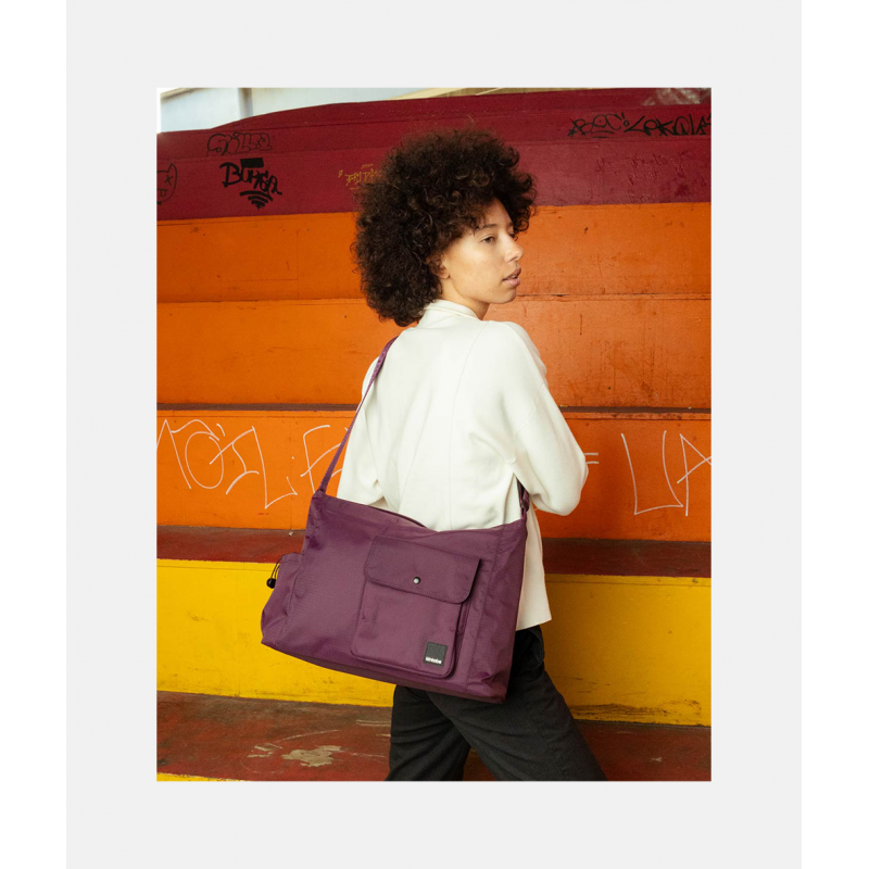 Kintobe - Milo Messenger - Deep Aubergine. Milo is a spacious tote bag that is a great companion throughout an active day in the city. It´ll carry your daily essentials and computer, hold your groceries, gym gear, sleep-over kit or beach equipment. It has a roomy front pocket for your essentials, which has a magnetic closure for quick access. The side pocket has an elastic drawstring closure and can hold your water bottle. The adjustable shoulder strap makes it easy to fix the perfect length for biking or walking. Fits 13 -14 inch MacBook + Lenovo 14 inch Thinkpad.