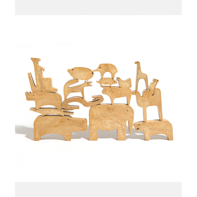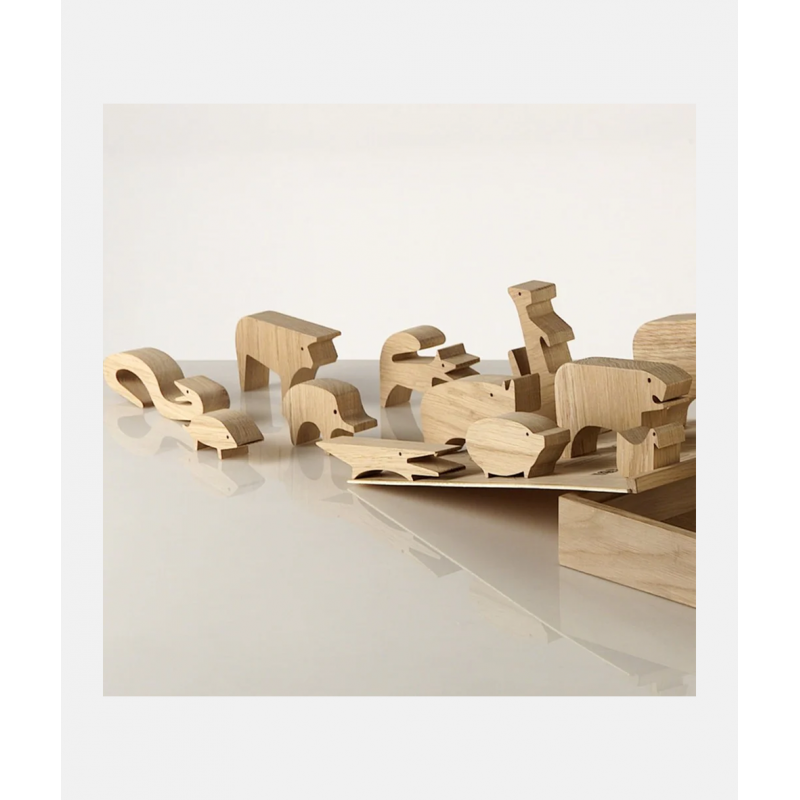 Enzo Mari 16 Animali Puzzle. The 16 Animali Puzzle by Enzo Mari is an iconic modernist wooden puzzle, designed to produce 16 different animal shapes, made with just one continuous cut, from a single piece of wood.
