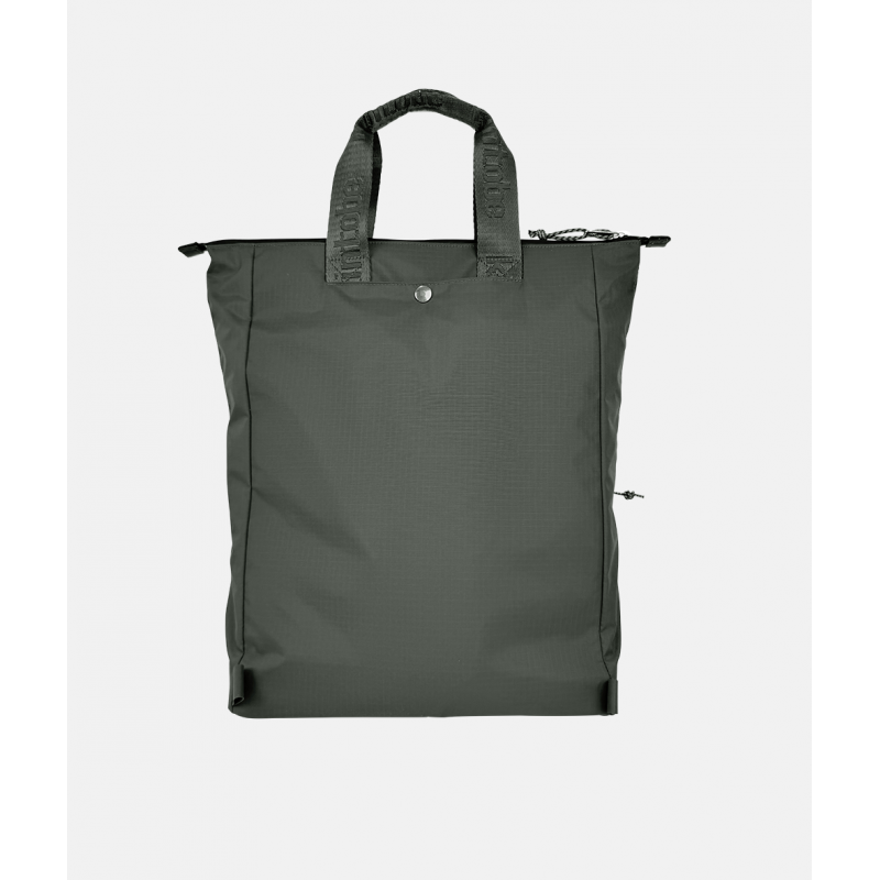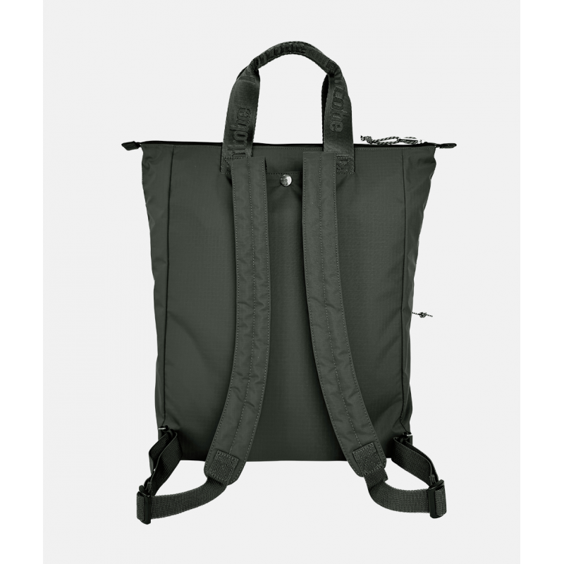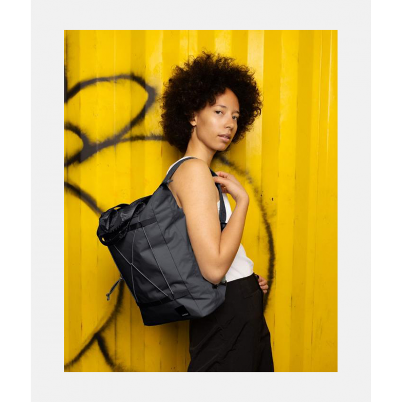 TATE is a sleek convertible bag that can be used as a tote bag as well as a backpack. It has detachable shoulder straps which can be hidden inside the back slip pocket. It has a top zipper opening and carry handles on the top. At the front it features webbing loops for added functionality as well as a reflective elastic bungee for extra external storage and low-light visibility.