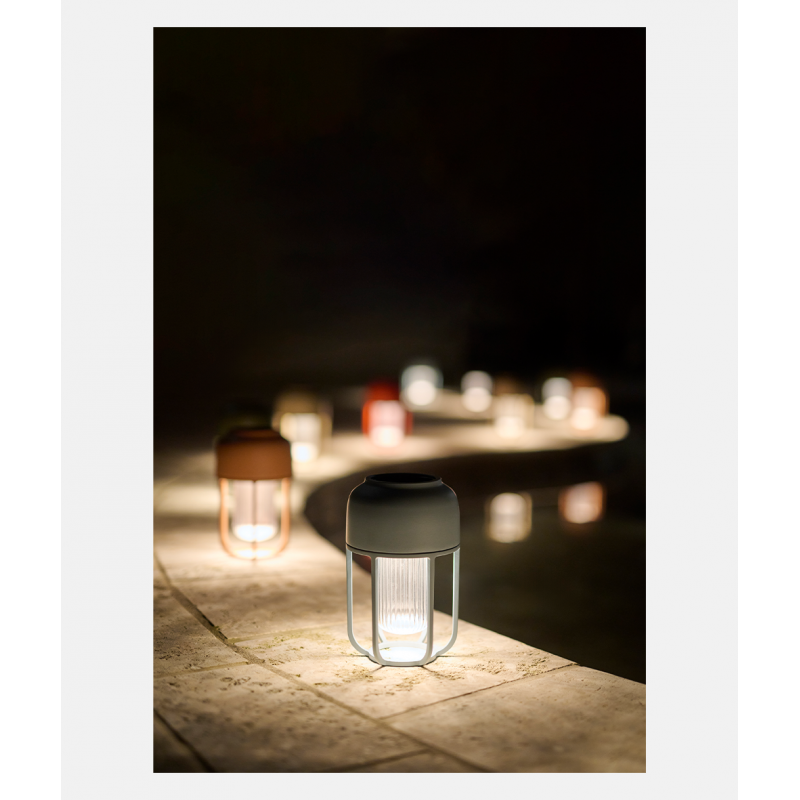 Light No.1 is a portable solar-powered lamp for use both outdoor and indoor. Featuring the high-quality aesthetics known from interior lighting. The appearance is characterized by an elegant, smooth surface and an appealing color palette. The design ensures discrete placement of the solar module, which becomes an integrated part of the lamp.