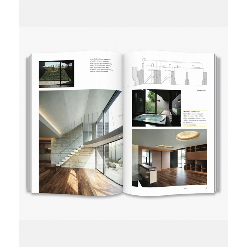 • 50 Houses, including projects all over Japan by architects including ALX, Tadao Ando, ARtechnic, Atelier Bow-Wow, Atelier Tekuto, Shigeru Ban, C+A Coelacanth, Double Negatives, Eastern Design, Shuhei Endo, Masaki Endoh, Terunobu Fujimori, Sou Fujimoto, Fujiwara + Muro, Masahira Harada + MAO, Go Hasegawa, Naoko Horibe, Takeshi Hosaka, Jun Igarashi, Junya Isigami, Keiko + Manabu, Daisuke Maeda, UID/Keisuke Maeda, Norisada Maeda, Keiko Aita, Yuji Nakae, Koji Nakawatase, Satoshi Okada, Kazuyo Sejima, Hiroyuki Shinozaki, Suppose Design Office, TNA, Makiko Tsukada, Tsukano Architects and Koji Tsutsui
