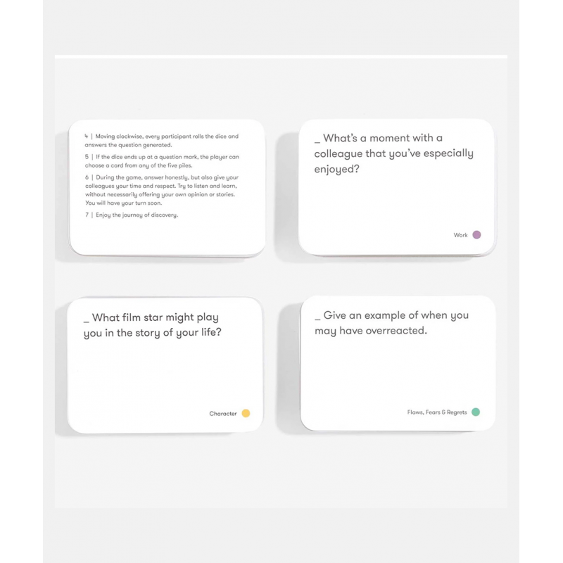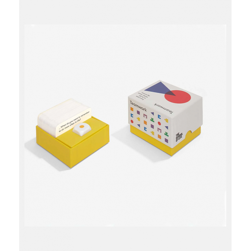 Teamwork contains 100 questions that playfully and sensitively introduce us to our colleagues by setting up the best kinds of conversation about everything from our childhoods to our values. Played as a group, we’ll end up in profound, eye-opening and meaningful chats that humanise colleagues in each other’s eyes and help to create an atmosphere of forgiving and kind collegiality around the office: this is the best and easiest way to turn individuals into a team.